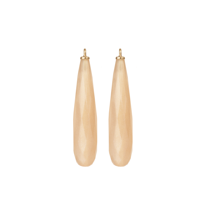 Ole Lynggaard vedhængene er fremstillet af 18kt rødguld med flotte facetterede blush månesten, som smukt fuldender det elegante look. Monteres nemt på et par ørekroge.