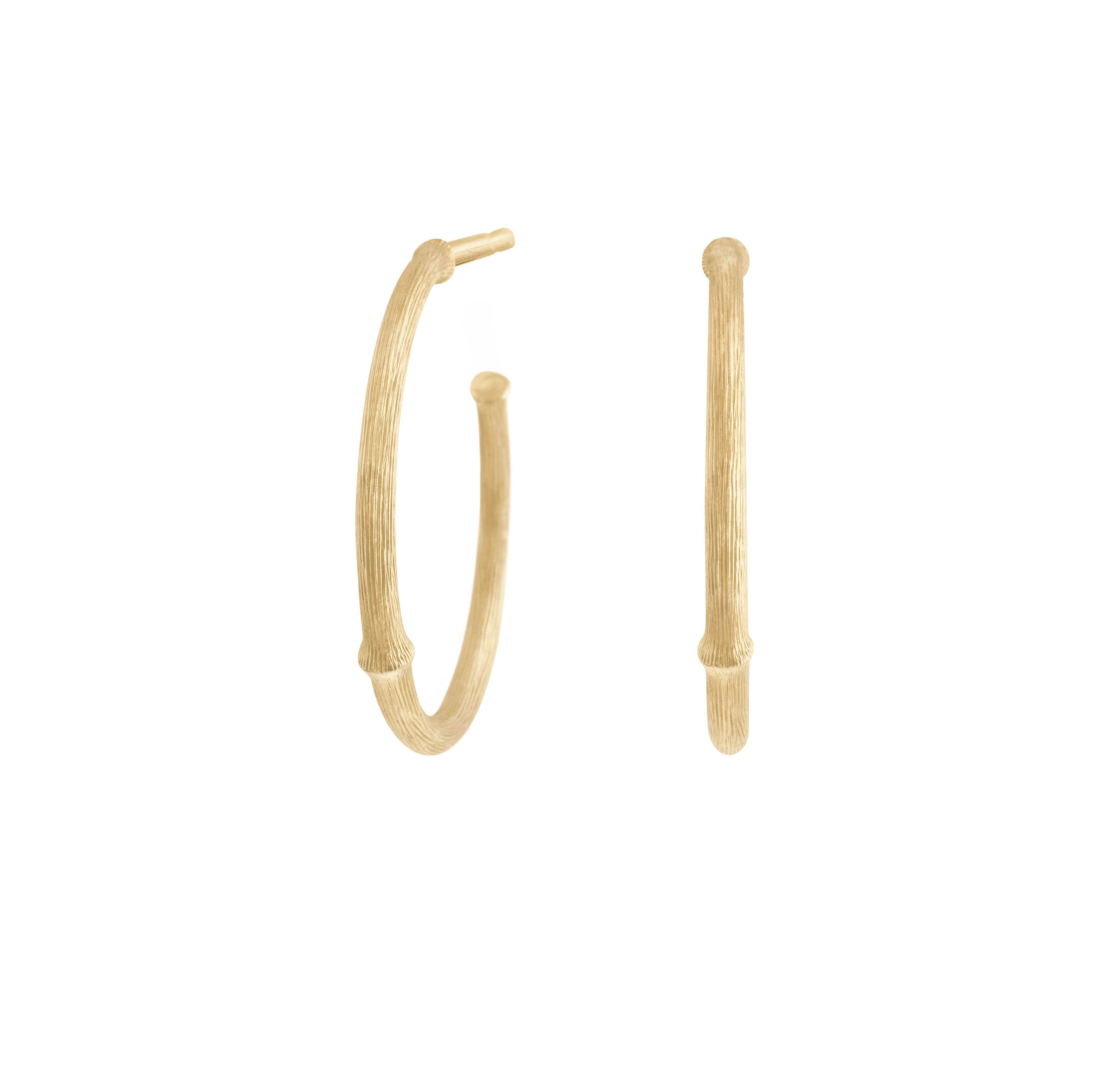 Designet af Charlotte Lynggaard. Disse Nature kreol øreringe medium er udført i 18 karat rødguld. Overfladerne på øreringene, der måler 21 mm i diameter, er håndsatinerede af professionelle guldsmede. Sælges som et par. En del af Nature Kollektionen.