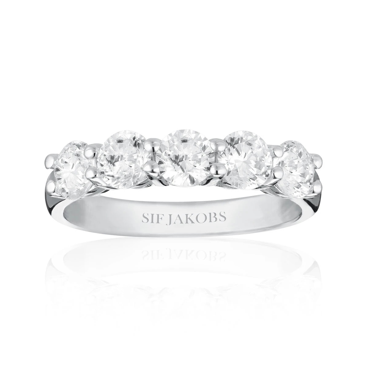 Sif Jakobs, Belluno Uno ring i sterlingsølv med hvide zirkonia. Enkelt designet ring i sterlingsølv med hvide zirkonia. Ringen ligner den klassiske allianceringe, med 5 hvide facetterede zirkonia der glimter og glimter. Mål: bredde 4,5mm Bemærk venligst: Produktet kan afvige fra billedet.