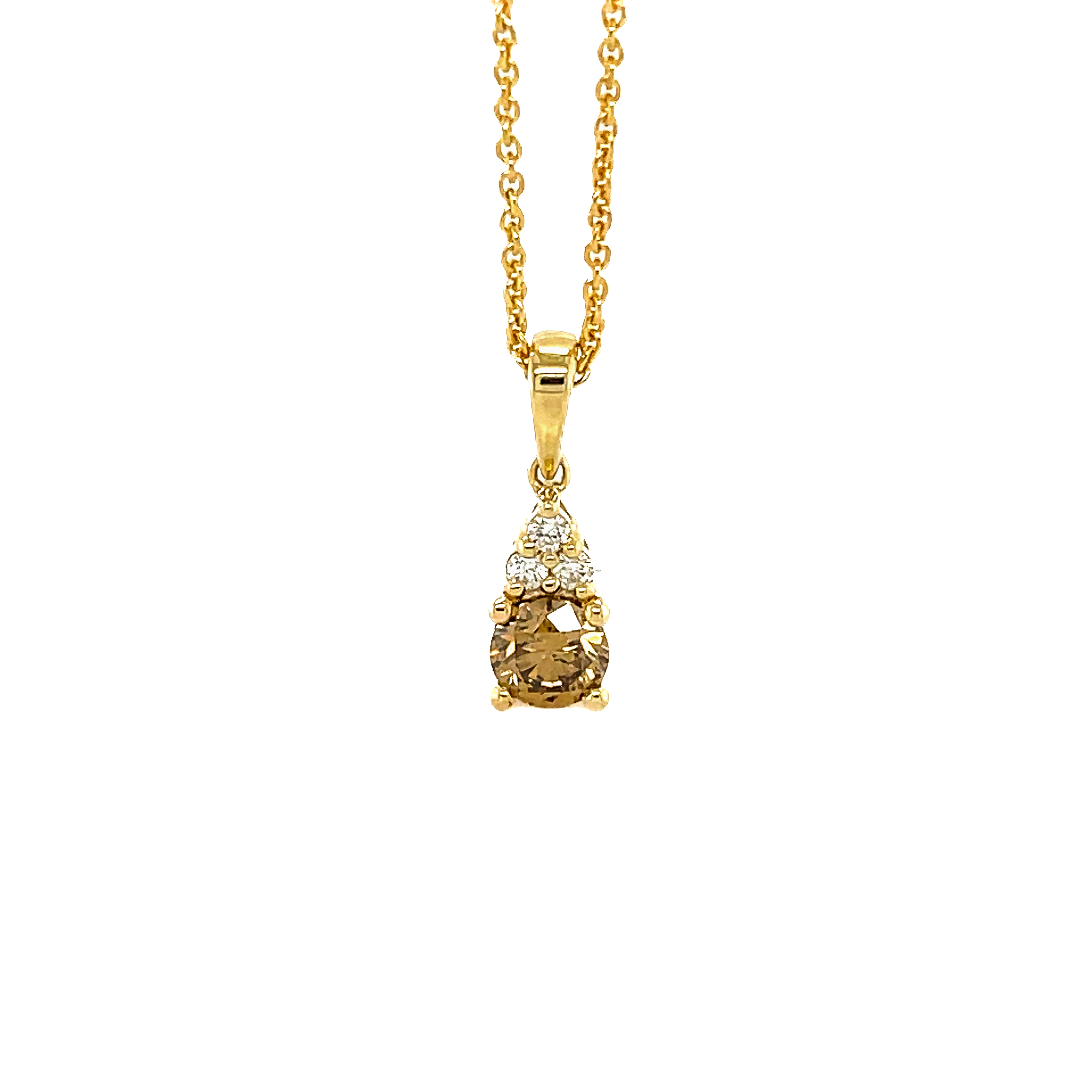 Vi forkæler vores kunder med et fantastisk jubilæumsvedhæng i 14kt rødguld med en 0,50ct champange farvet diamant. Den smukke champagne farve fremhæves af 3 hvide diamanter, som giver vedhænget spil og liv. Vedhænget sidder i et fint patchøsken som sikrer at vedhænget ikke drejer rundt, og sidder som det skal hele tiden. Et klassisk design som man aldrig bliver træt af, perfekt til alle lejligheder, om du er på frierfødder, til fødselsdagen, julegaven, konfirmationsgaven eller bare en helt særlig gave til dig selv er dette vedhæng perfekt. Er endnu smukkere 'live' og fås kun hos Müllers Guldsmedje. Bemærk venligst: Produktet kan være forstørret og farveforstærket.| Smykke type | Vedhæng |