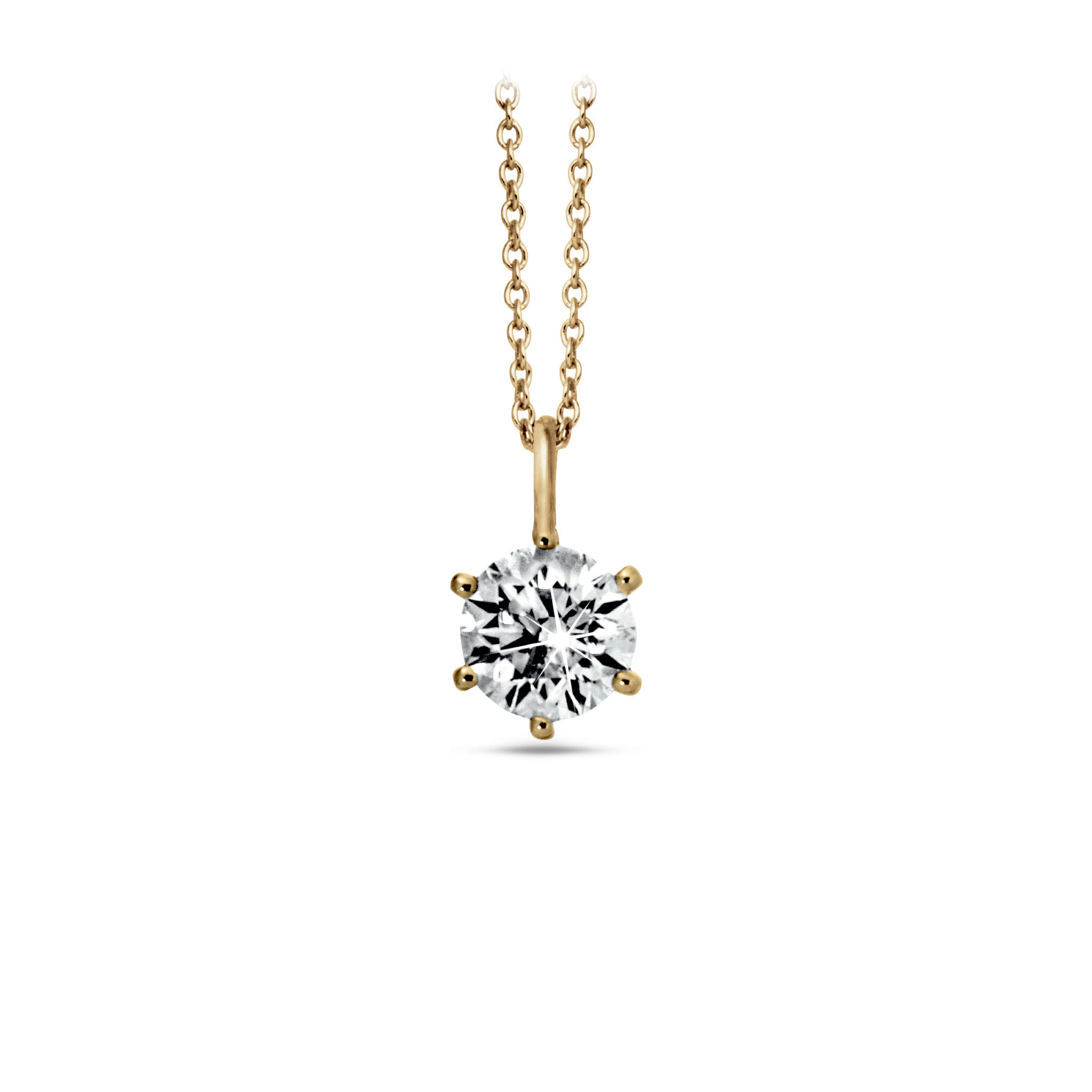 By Müller Diana brillantvedhæng, Beautiful Diana. Diana brillant vedhæng fra By Müller er fremstillet i 14kt rødguld med en smuk brillantslebet diamant indfattet med 6 greb. Brillanten er nøje udvalgt hos stensliberen og vedhænget er designet specielt til denne eksklusive smykkeserie. Vedhænget er designet med en enkel 6 grebs fatning og et lille øsken hvor kæden kan gå igennem, dermed kan brillanten rigtig kommer til udtryk, svævende og glimtende som en stjerne. Bemærk venligst: Forgyldt sølvkæde medfølger - Produktet kan afvige fra billedet.