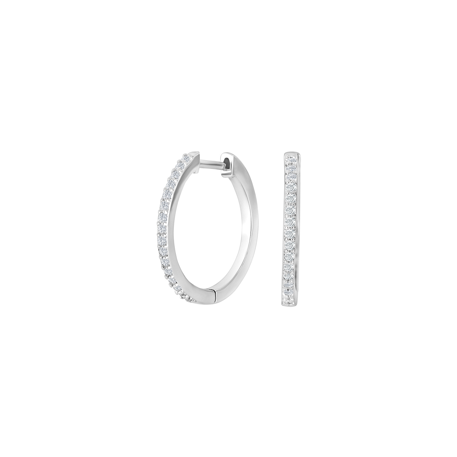 Joanlinor Junenor creoler med zirkoner. Fin creoler i mellem størrelse, fremstillet i sterlingsølv med den lette kliklås, og glimtende zirkoner på hele forsiden. En klassisk ørering. Mål: 18mm. Bemærk venligst: Produktet kan være forstørret og farveforstærket.