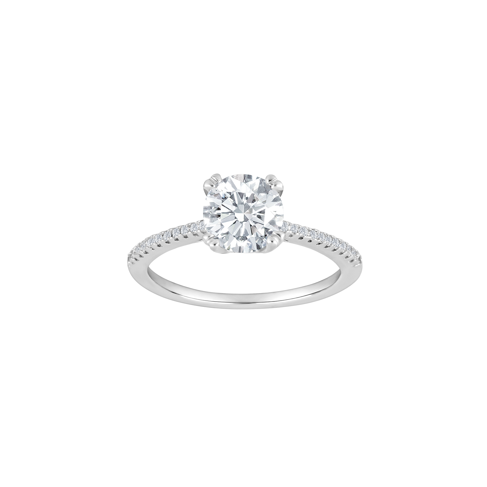 Joanlinor Ellennor ring med zirkoner. Klassisk enstensring fremstillet i sterlingsølv, med en super slank ringskinne ca.1,5mm bred besat med glimtende zirkoner. Og på toppen en stor facetsleben zirkon ca.7,5mm i en enkel 4 grebsfatning. Helt klassisk og smuk. Bemærk venligst: Produktet kan være forstørret og farveforstærket.