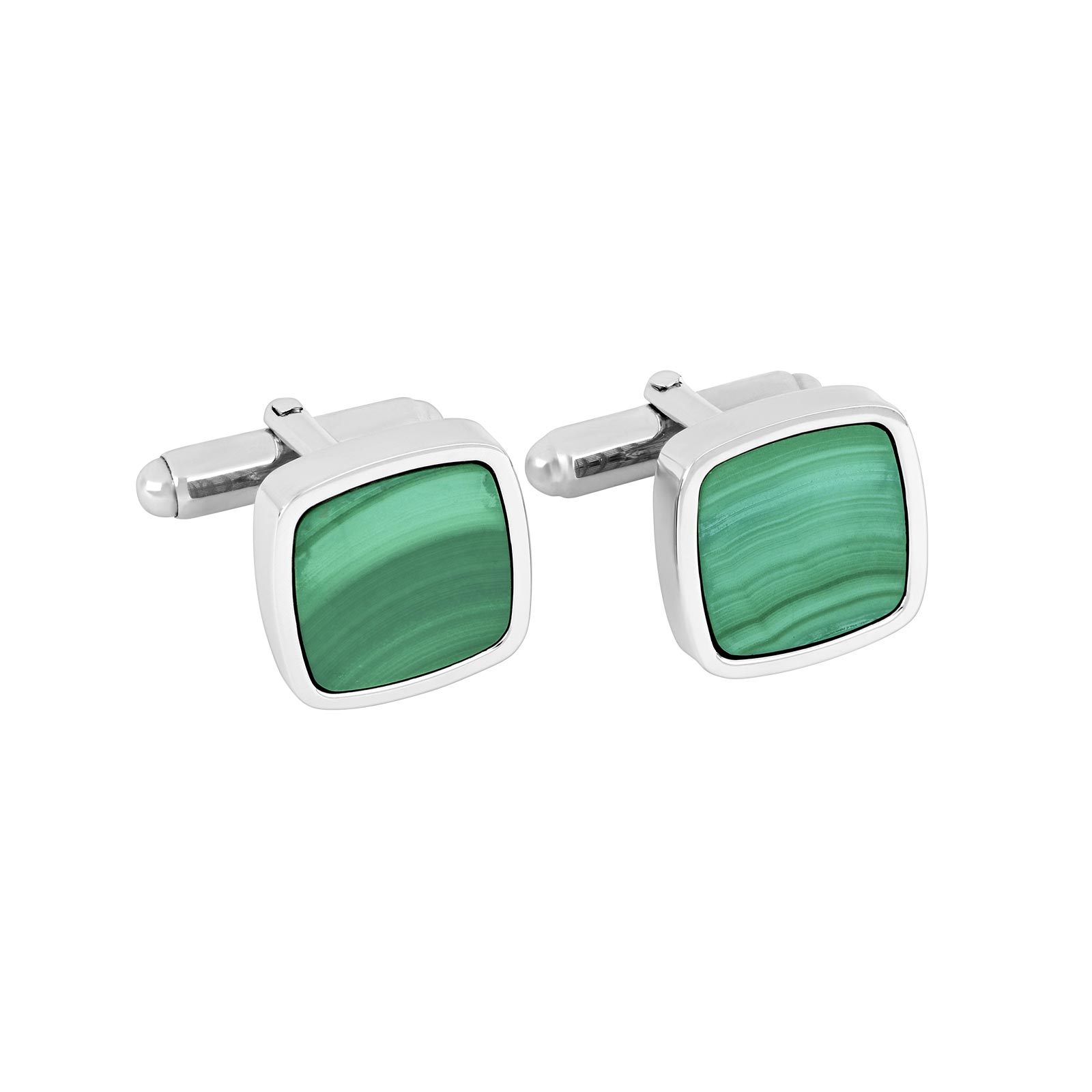 SON of NOA manchettknapper. Super flotte klassiske manchettknapper fremstillet i sterlingsølv med en firkantet grøn malakit. Lukkes med vippe fjederlås som skal drejes når den er kommet igennem manchetten på skjorten. Passer flot til alle typer jakkesæt og skjorter. Bemærk venligst: Produktet kan være forstørret og farveforstærket.