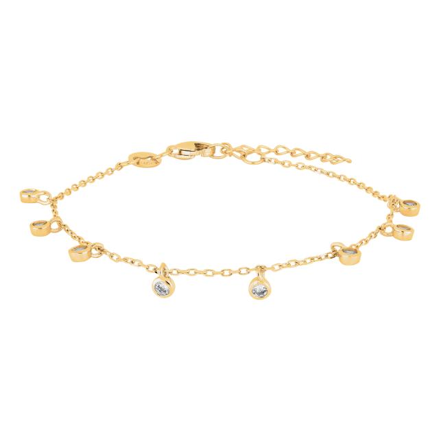 Super fint forgyldt sølv armbånd med små glimtende zirkonia der glimter når man bevæger armen.