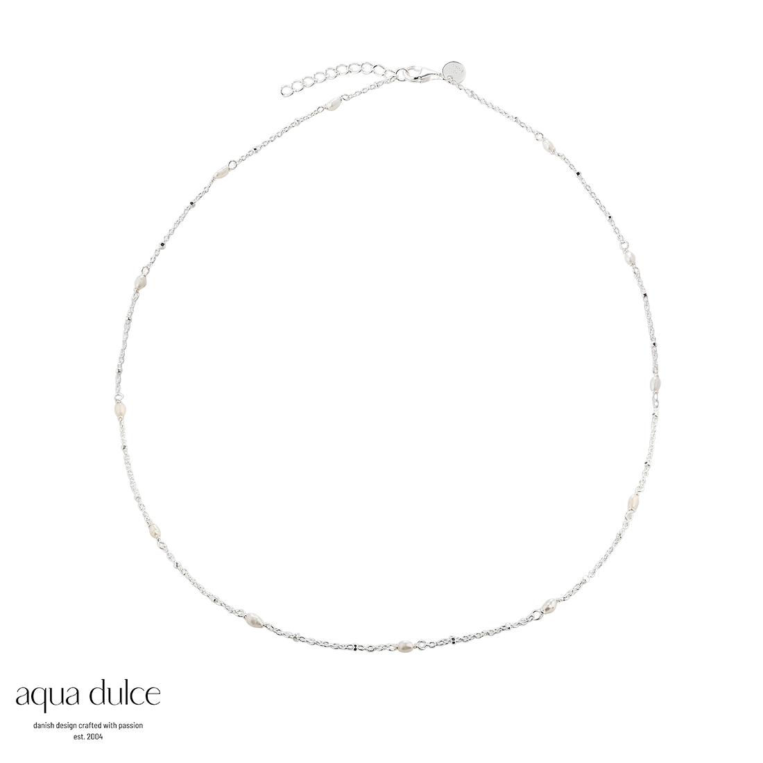 Gør hverdagen mere glamourøs med denne flotte halskæde fra Rice kollektionen. Halskæden kommer med fine risformede perler, og små vedhæng så man kan gøre den helt personlig. Halskæden kan ligeledes justeres i længden, så den sidder helt som ønsket. Størrelsen måler 42+3cm. og fås både i forgyldt sterlingsølv og sterlingsølv. Bemærk venligst at produktet kan afvige fra billedet.| Smykke type | Halskæde |