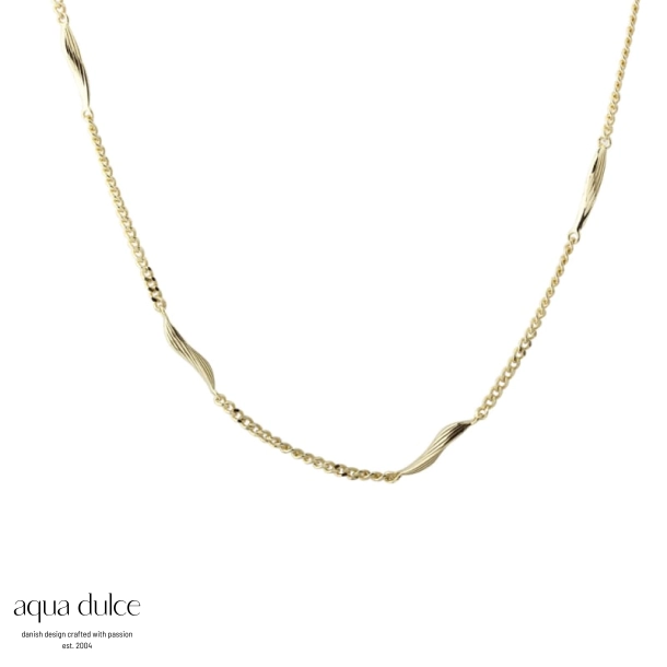 Elara halskæde fra Aqua Dulce i forgyldt sterlingsølv. Halskæden findes både i sterlingsølv og i forgyldt sterlingsølv. Kan justeres i længde fra 42-45cm.
