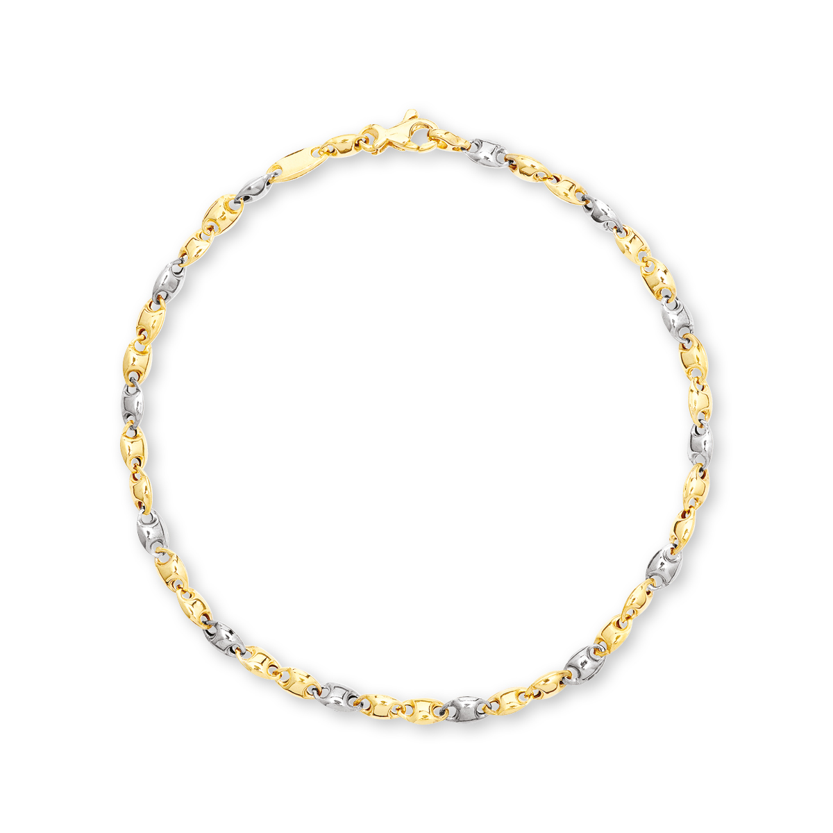Stella Gold rød- og hvidguldsarmbånd. Super fint to farvet armbånd, fremstillet i 9kt rød- og hvidguld. Med små buttede lette led, kombineres det nemt med andre armbånd, og spillet mellem rød og hvidguld er super flot. Mål: 20cm. Bemærk venligst: Produktet kan være forstørret eller farveforstærket