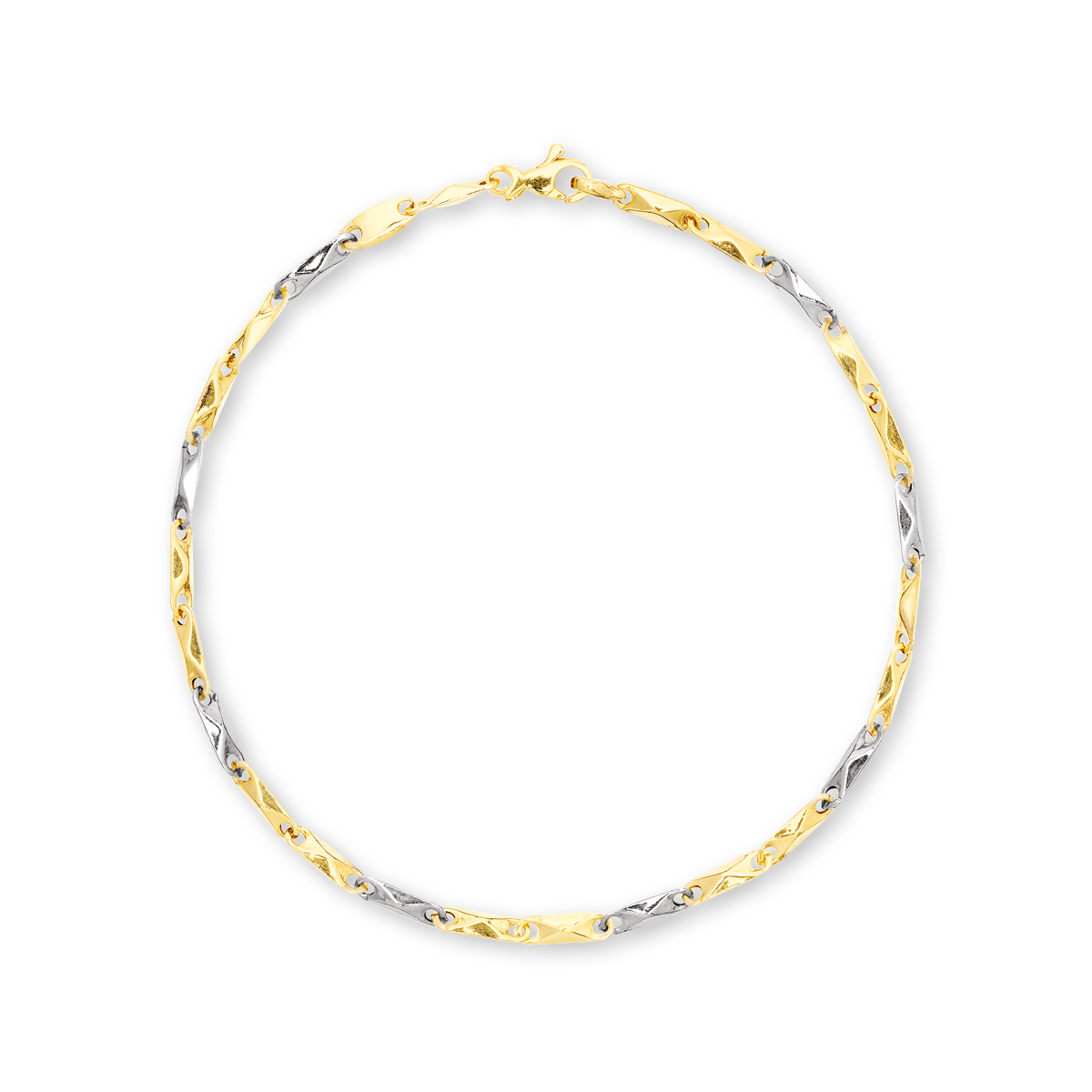 Stella Gold rød- og hvidguldsarmbånd. Super fint to farvet armbånd, fremstillet i 9kt rød- og hvidguld. Med små aflange lette led som går op i en lille trekant, kombineres det nemt med andre armbånd, og spillet mellem rød og hvidguld er super flot. Mål: 20cm. Bemærk venligst: Produktet kan være forstørret eller farveforstærket