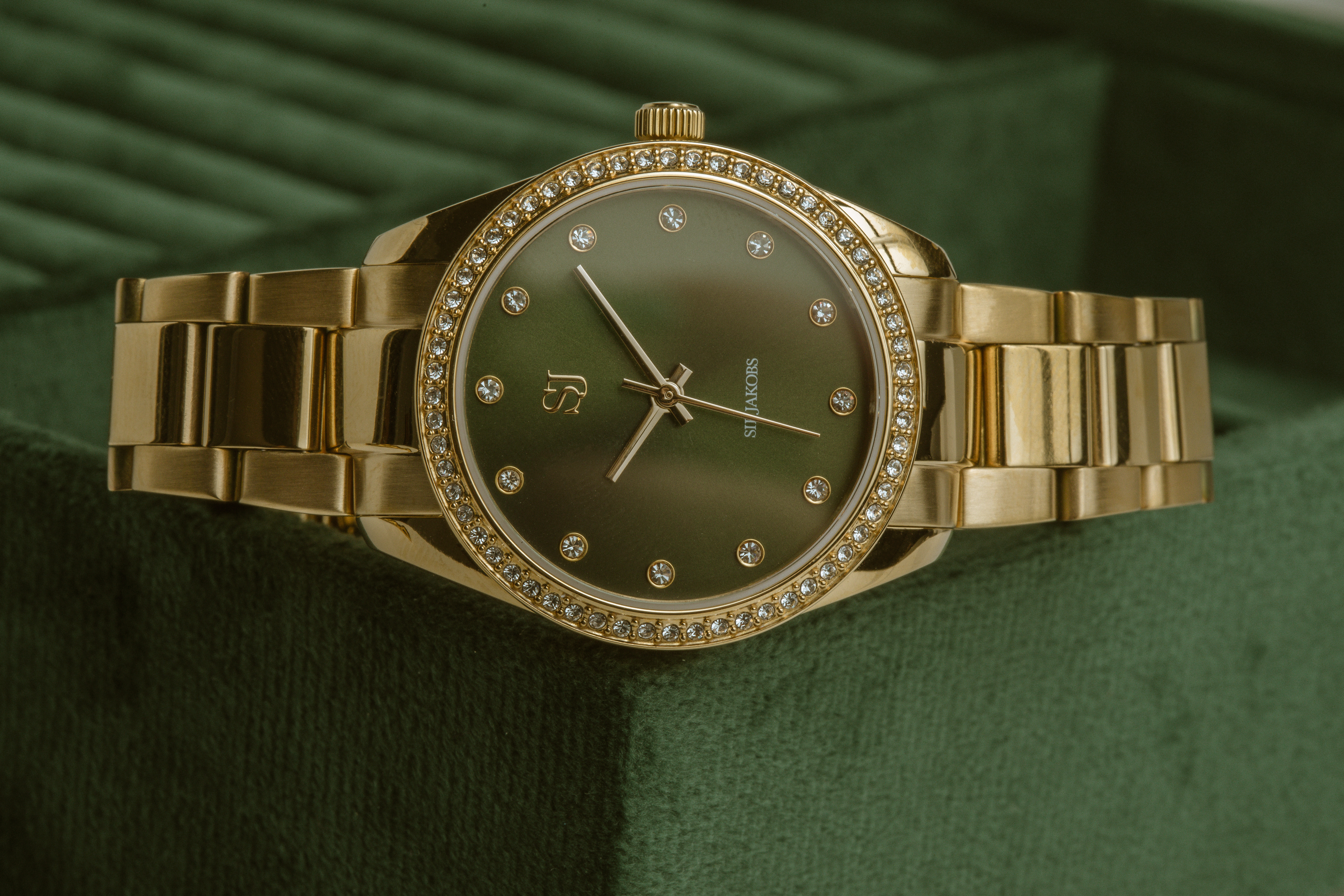 Elegant dameur udført i forgyldt rustfrit stål. Den grønne urskive er udstyret med hvide zirkoner, som giver uret et elegant og tidsløst design. Vandtæthed er ned til 50 m. Urværket er lavet i Japan Miyota. Bemærk venligst at produktet kan afvige fra billedet.Køn | Dame |