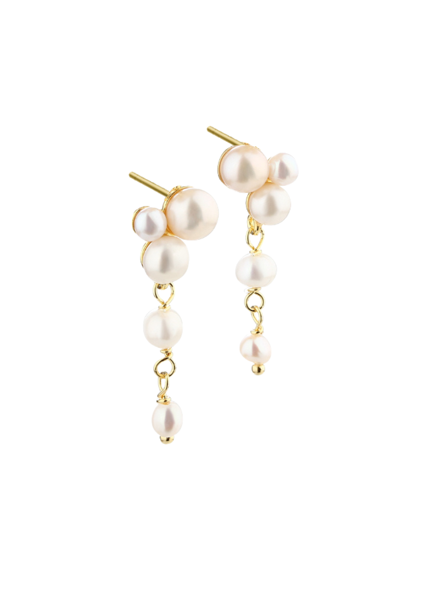 Disse fine ørestikkere fra Bubbels kommer med 5 hvide ferskvandsperler. Ørestikkerne fås i forgyldt sterlingsølv og sterlingsølv. Bemærk venligst at produktet kan afvige fra billedet.| Smykke type | Ørestikker |