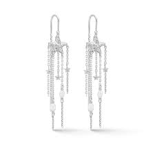 Fine øreringe fra Studio Z, der er inspireret af undervandsverdenen i sterlingsølv med ferskvandsperler. Øreringene måler 50 mm i længden.