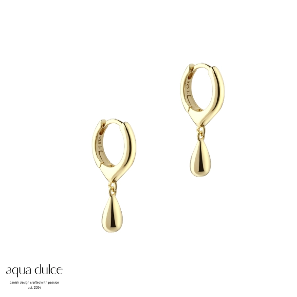 Elegante hoops fra Aqua Dulces Shiny Drop kollktion i forgyldt sterlingsølv. Øreringene passer til alle lejligheder, og kan sættes sammen med andre øreringe for et mere personligt look.