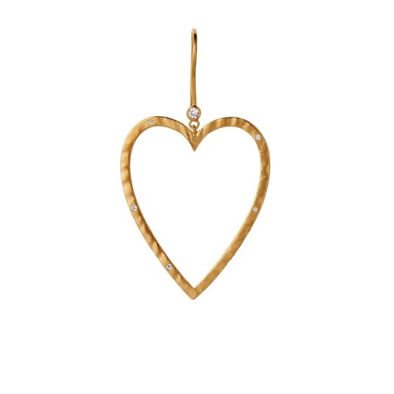 Fin hjerteørering fra Stine A i forgyldt sølv med zirkonia rundt i hjertet. Øreringen kan bruges alene eller sat sammen med andre øreringe for et mere personligt look. Hjertet måler 4 cm i længden.
