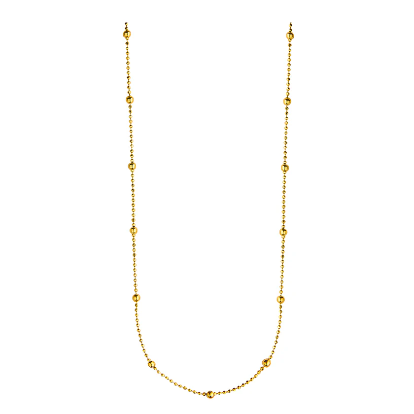 Fin halskæde i forgyldt sterlingsølv med kugler hele vejen rundt. Kan bruges alene eller sættes sammen med andre halskæder for et mere personligt look. Måler 42 cm + 3 cm i justerbart stykke. Et tidløst bud på en elegant halskæde.