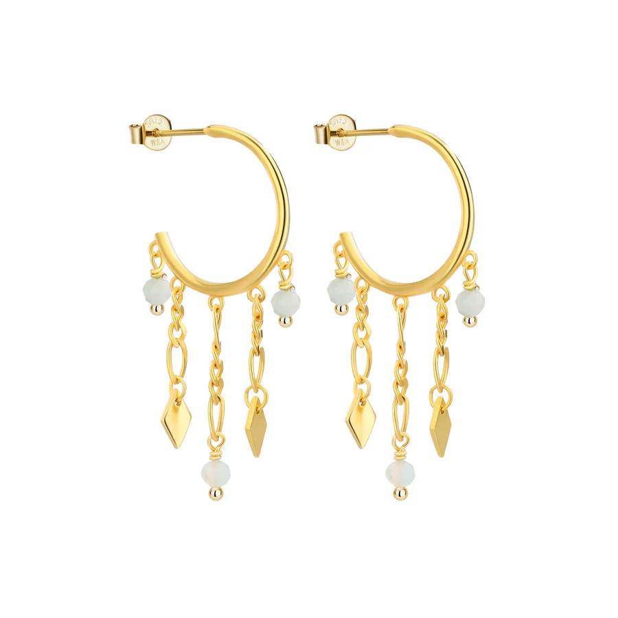 Petrea øreringe er med rå kæder, samt fine vedhæng - de passer perfekt til at mixe med stilrene øreringe, men kan også sagtens bæres alene for et elegant eller råt look, alt efter egen stil!