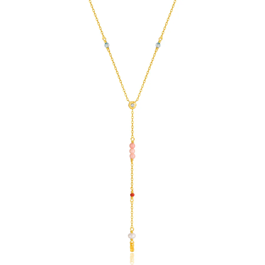 Magdalene halskæden er en elegant Y-halskæde i 14 karat guldbelagt sterlingsølv, pyntet med perler, zirkonia og ferskvandsperler.