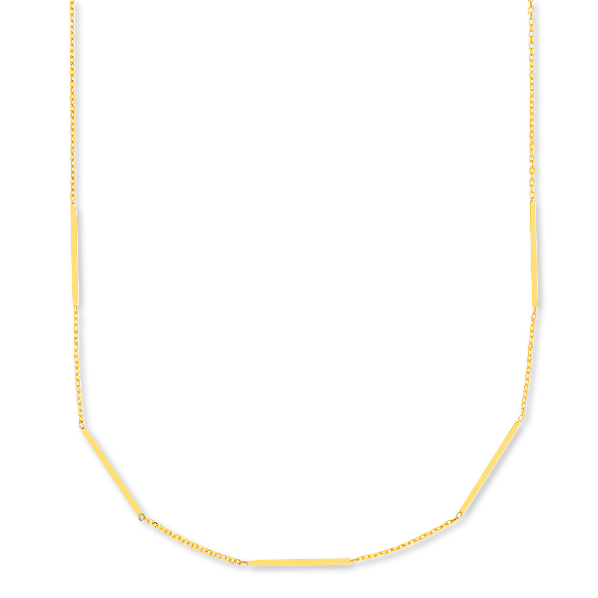 Stella Gold rødgulds halskæde med frem pinde. Fin tynd halskæde fremstillet i 9kt rødguld med frem aflange pinde fordelt på kæden. Helt enkel og elegangt, og kræver ikke vedhæng for at give spil. Justerbar med små ønsker: 41cm + 3cm. Bemærk venligst: Produktet kan være forstørret og farveforstærket