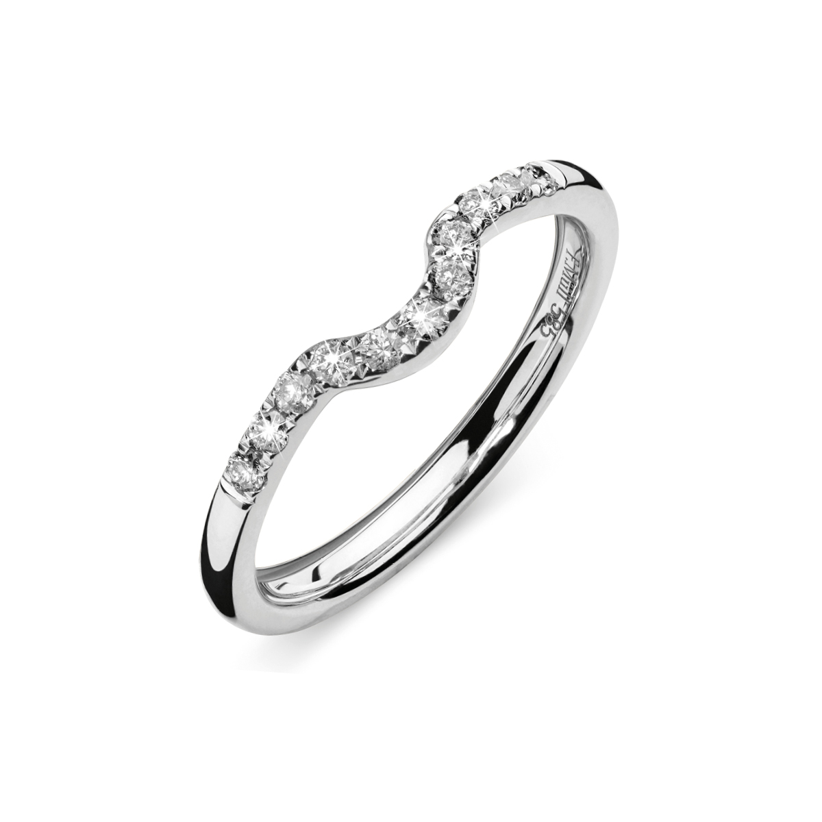 Looks Unique sidering smal, fremstillet i 14kt hvidguld og formet med en fin bue op toppen er ringen perfekt til at sidde ved siden af vores Looks ringe. Det fine udtryk, næsten som en alliancering, sidder diamanterne på række med små fine greb, så de ligner funklende stjerner på en snor. Ringen kan bruges alene eller sammen med andre ringe. Mål: 2mm bred. Bemæk venligst: Billedet er vist med en Looks ring ved siden af sideringen. Looksringen købes separat. Produktet kan være forstørret eller farveforstærket.