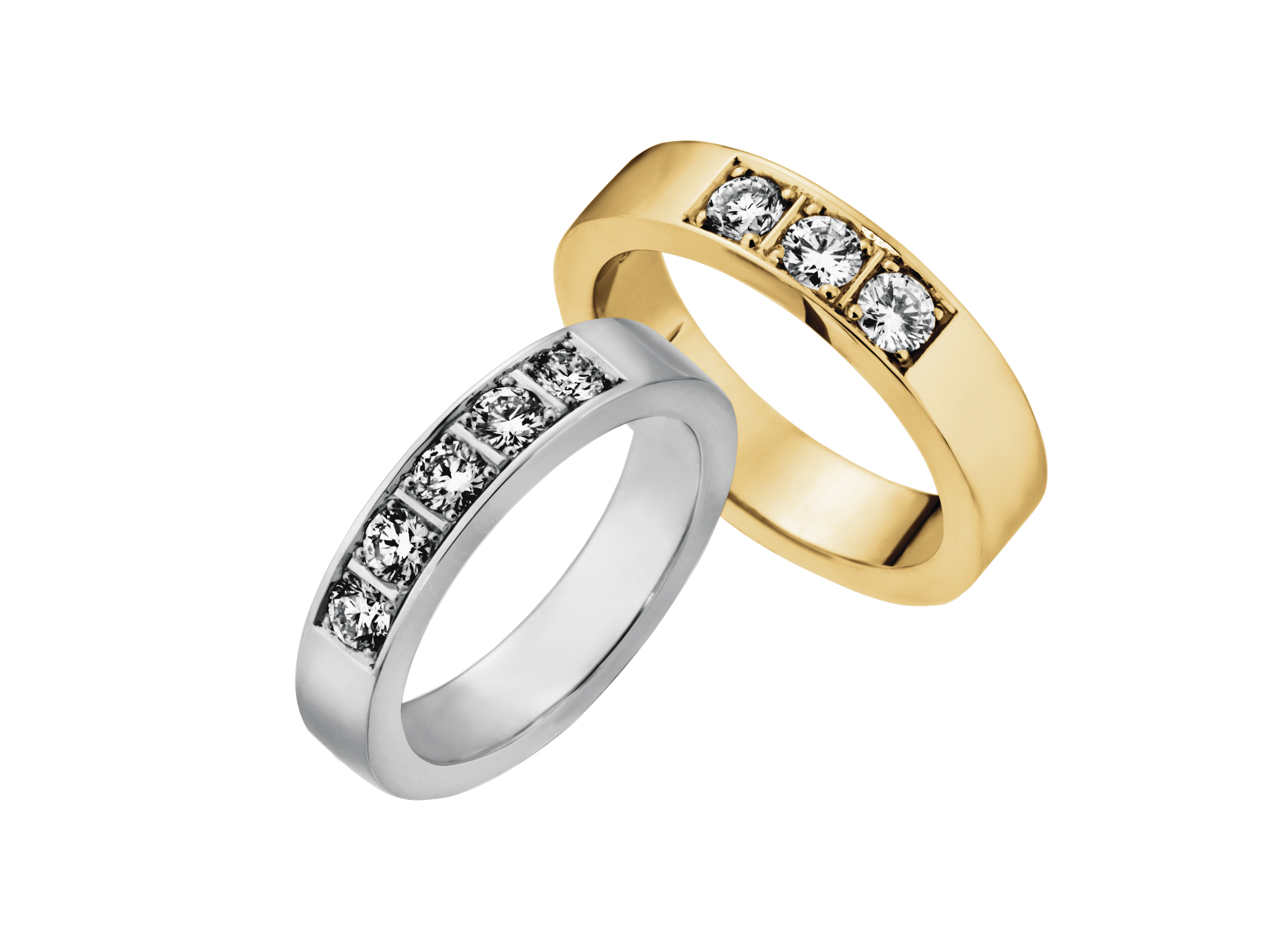 Memories er en håndlavet alliancering i et tidløst klassik design, der kan bæres alene eller med fordel kombineres med et sæt garderringe, der flot vil "beskytte" din ring. Memories er fremstillet med en yderst holdbar ringskinne af 14kt hvidguld og isat 5 x 0,15ct TW/Vs brillant i carréfatning, som effektivt beskytter din sten mod slidtage. Der er mulighed for at gøre ringen endnu mere personlig med forskellige overflader, eller isættelse af funklende brillanter eller andre farvede ædelsten igennem årene, som et symbol på flere oplevelser, minder eller kærlighed.
