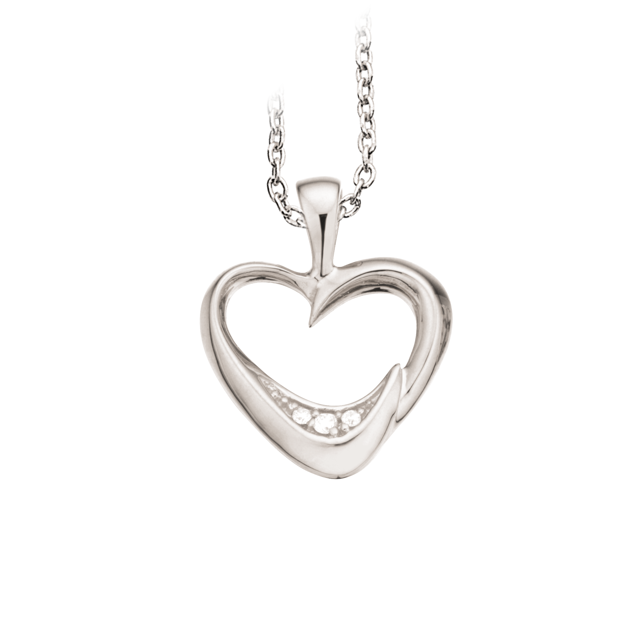 14kt hvidguldshjerte med sølv kæde